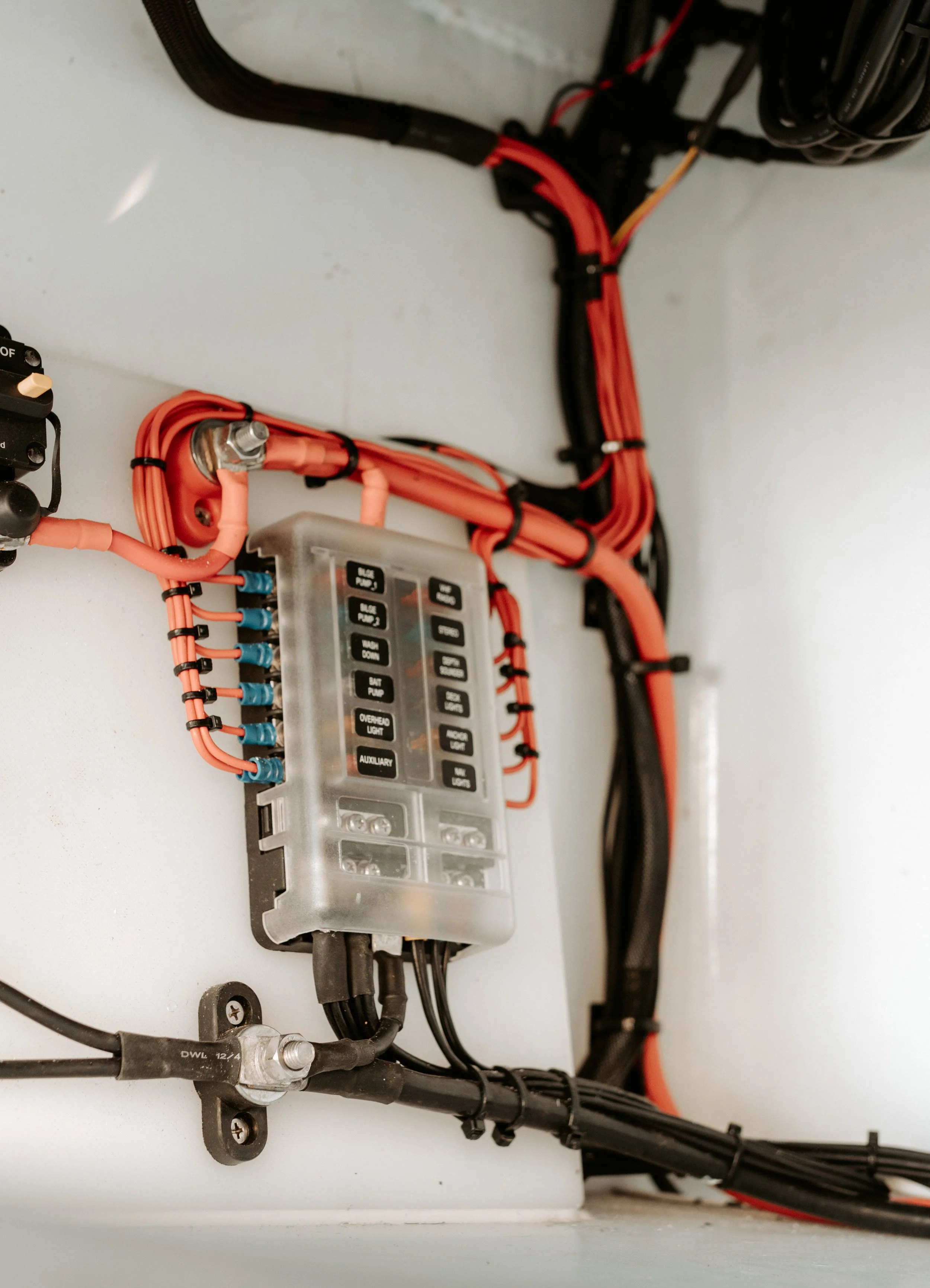 Count on us to ensure your 12V system is functioning properly, whether it’s tidying up a bird’s nest of wires or performing a complete rewire using marine tinned wiring