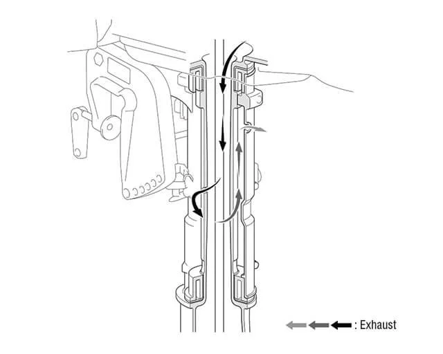 Labyrinth Exhaust System Yamaha’s proven labyrinth exhaust system reduces engine noise at low RPM and idle. A water sealed outer wall around the exhaust muffler effectively reduces exhaust tone, for whisper quiet operation and enhances cooling, which protects the exhaust system against corrosion.