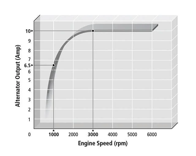 High-Output Alternator A 12 Volt 10 Amp high-output alternator ensures that power is always available to start the engine, even after long periods of idling or running at low revs. This provides extra starting power and delivers sufficient power to run a wide array of on-board electronic devices.